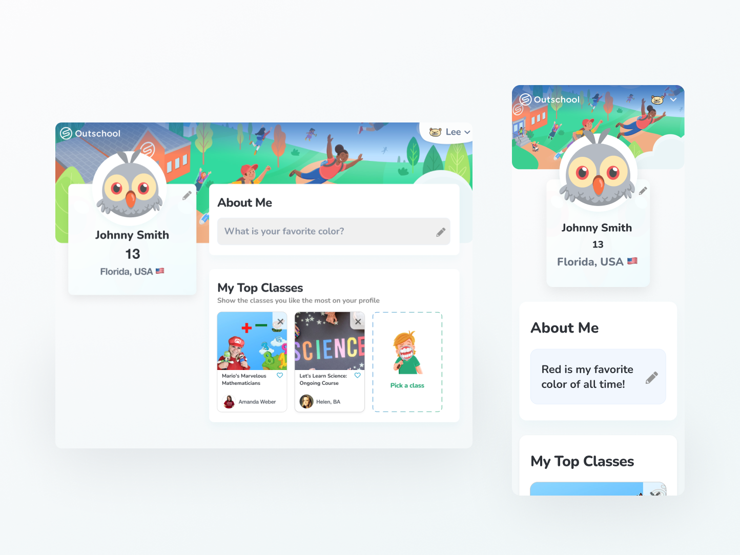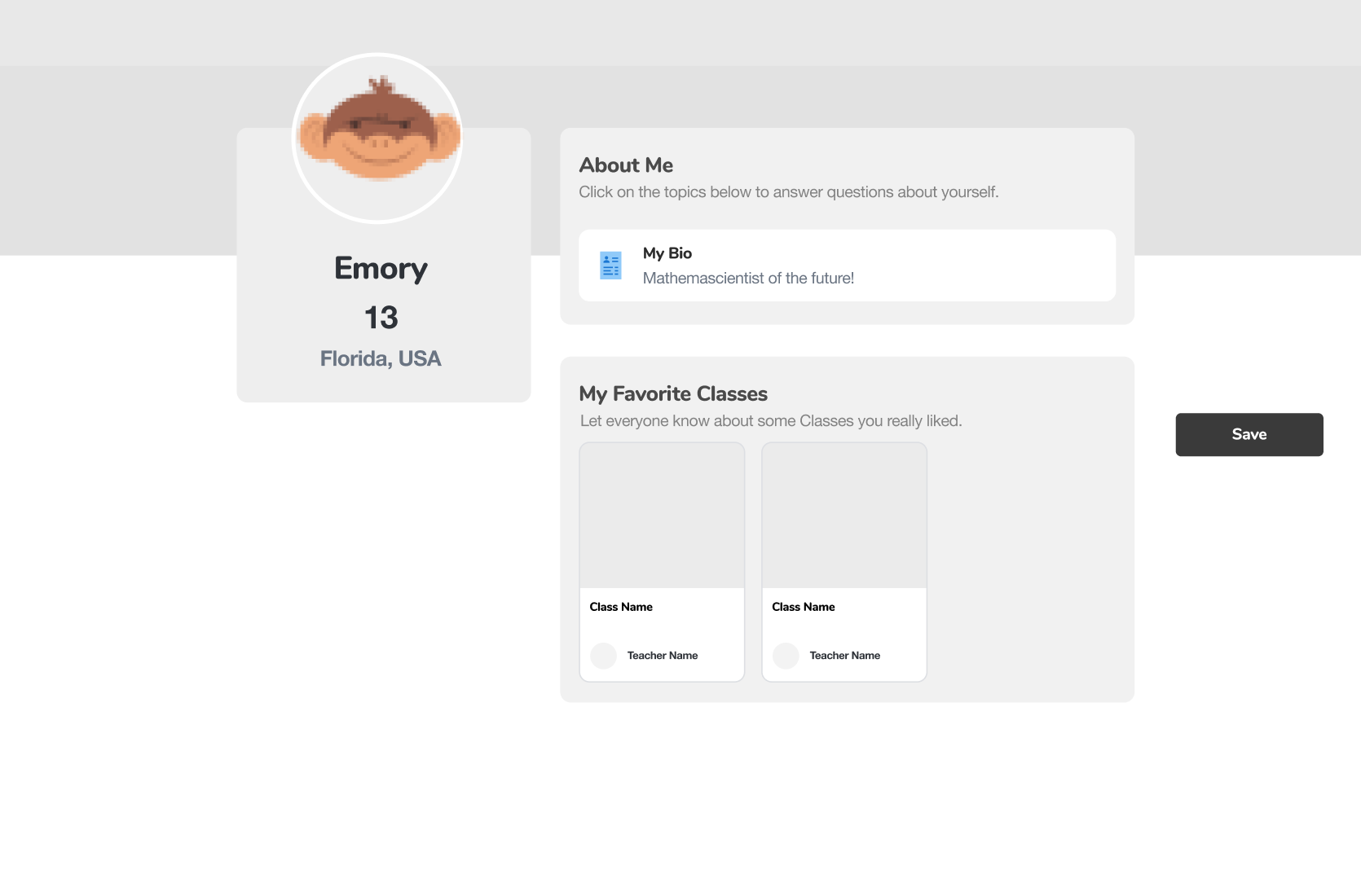 From research, we learned that learners expect profiles to be simple and actionable. First name, age, location, and avatar selection would be enough for learners to reasonably identify/recognize other learners.