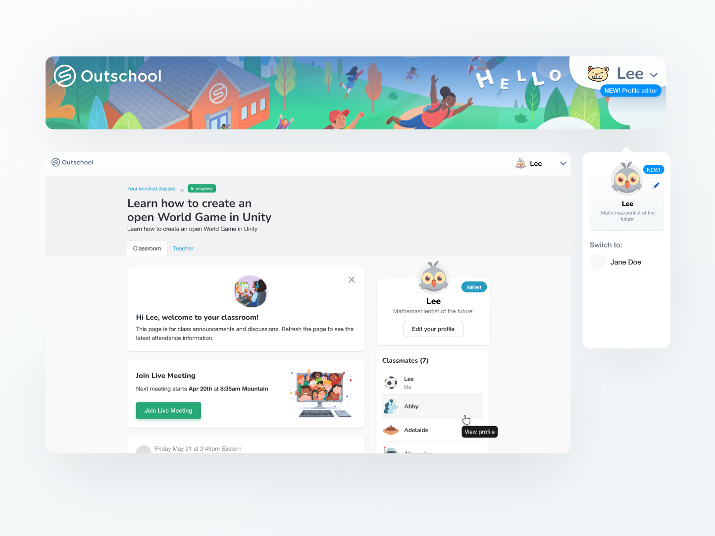 Profiles visible only to classmates and teachers