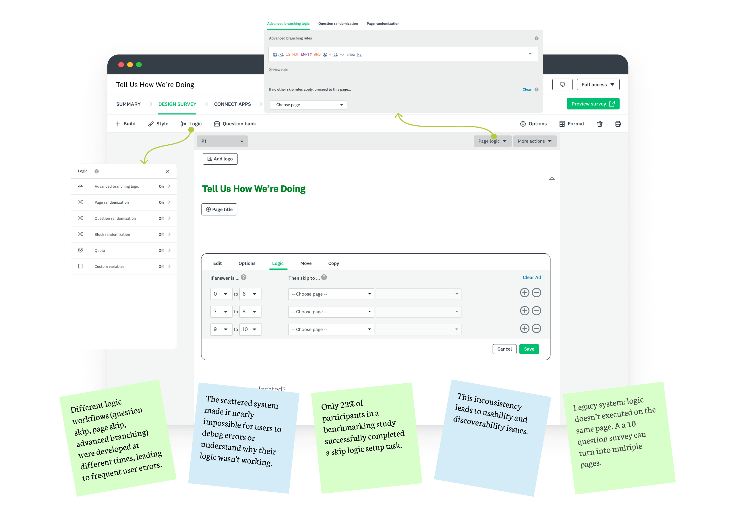 Redesigned SurveyMonkey’s logic builder to simplify complex workflows